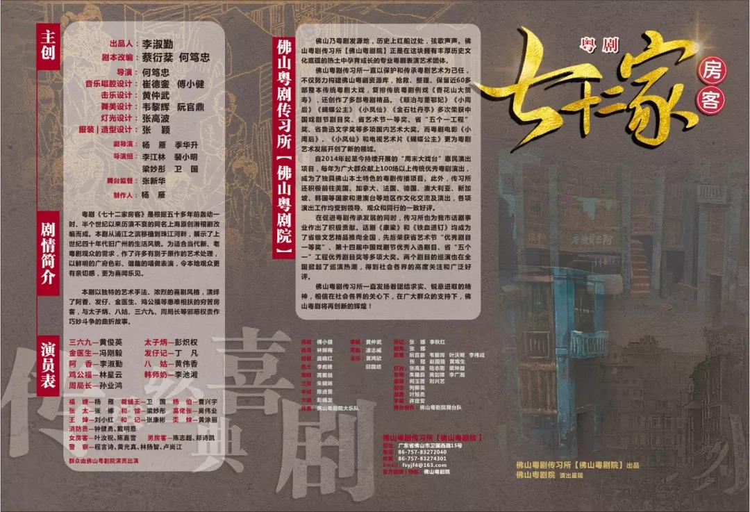 粤剧《七十二家房客》从酝酿、筹划、创作、排练和制作,经过剧组全体演职人员一年多的不懈努力,最终将这部高品质的粤剧舞台版《七十二家房客》完美的呈现在了观众面前。
