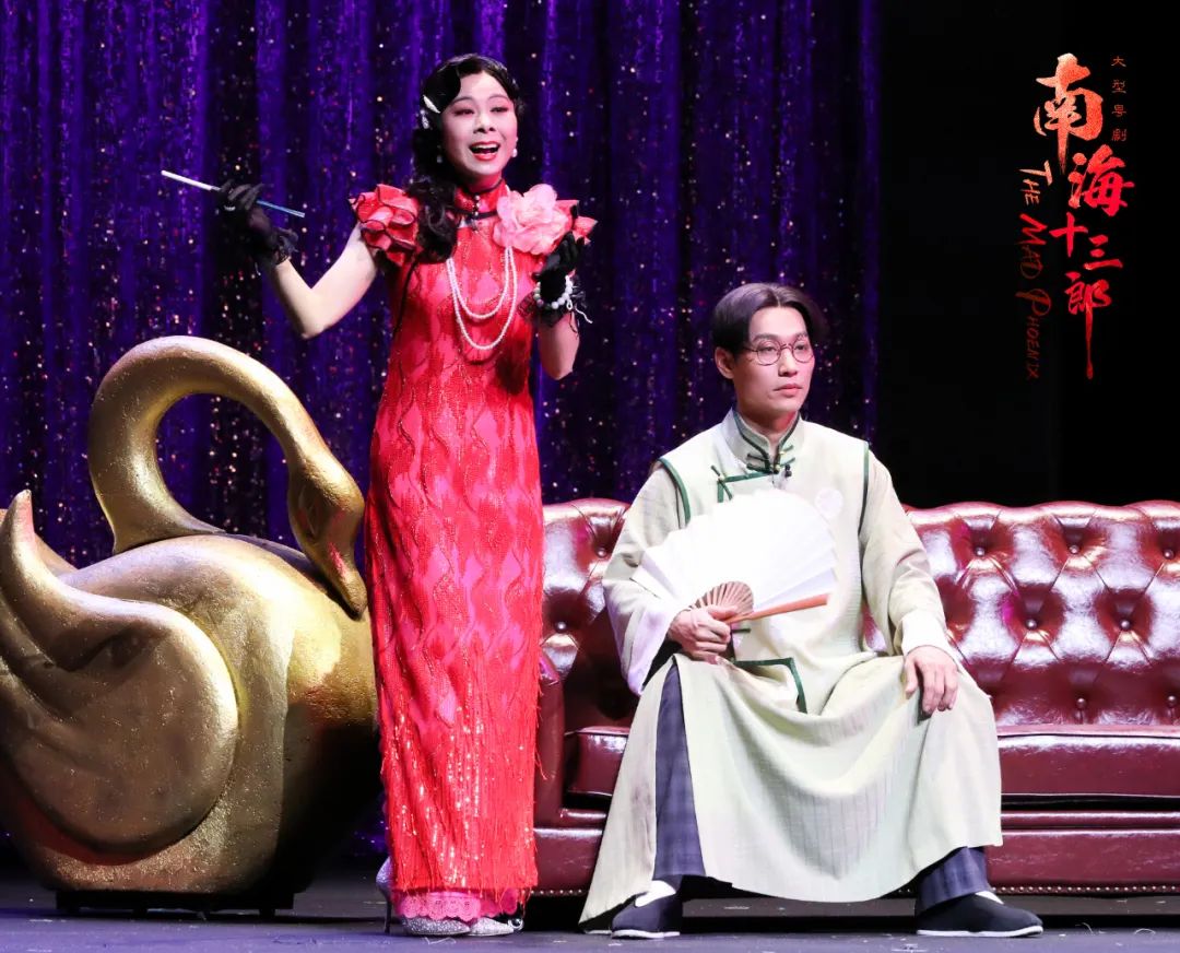 剧中既能看到演员用英文唱戏,布景上也有中英文夹杂的街景,还有太史蛇宴等佛山文化元素,生动地体现了湾区文化。粤剧《南海十三郎》改编高度尊重原著,融入粤剧舞台的表演力,将粤剧独有的功架、唱腔、锣鼓等戏曲表演汇入舞台语言,让更多观众了解中国传统戏曲艺术,感受中华传统文化的魅力。